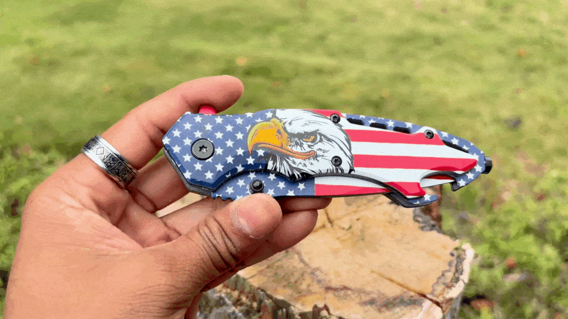 Crafted From Military-Grade Stainless Steel With a Easy Deploy System, This Knife is a Patriotic Masterpiece.